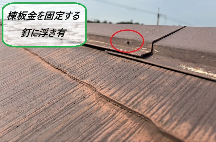 訪問業者が指摘していた棟板金について確認したところ、固定している釘が緩んでいる状態に🔍