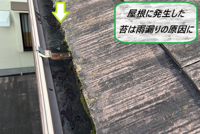 苔の発生は屋根のひび割れや雨漏りの原因にもつながるため、早めの対処がとても大切🍃