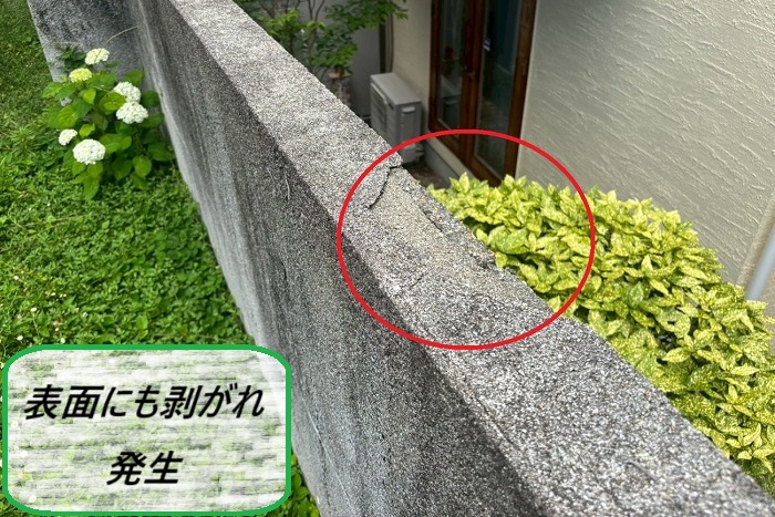 さらに擁壁の内側には花壇があり、植物の根の影響や長年の劣化によってコンクリート自体にダメージが及んでいると考えられます🤔