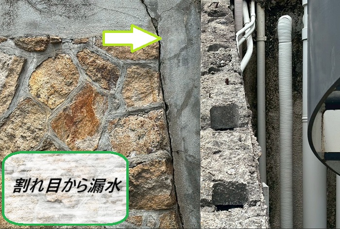 擁壁はコンクリート下地にスタッコ仕上げされていたけど、ヒビ割れから水漏れを確認しました(˘•ᴥ•˘)💦