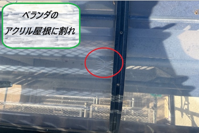 こちらは2階ベランダのアクリル屋根ですが、一部に割れを発見🔍