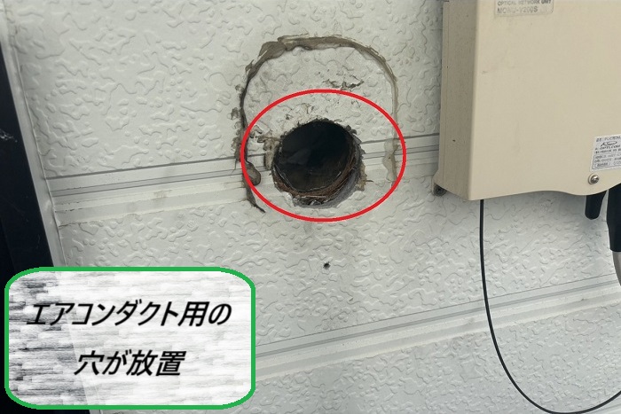 これはエアコンのダクト用の穴なのですが、塞がれないまま4箇所ほど放置されている状態です💦