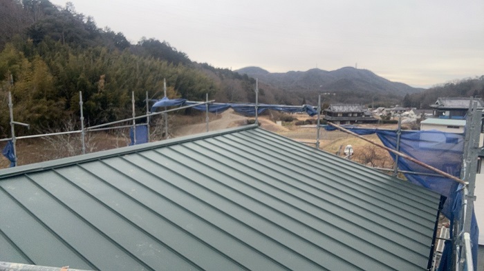 神戸市東灘区 【見積書大公開】 切妻屋根で立平のカバー工事(面積136㎡)
