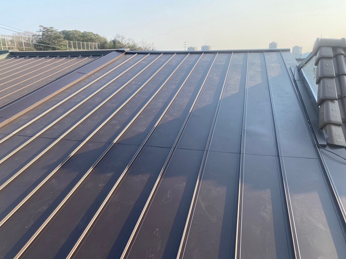 西脇市 【見積書大公開】 片流れの連棟屋根に立平でカバー工事(面積32㎡)