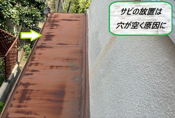 錆が進むと鉄板が薄くなり、やがて穴が開いて雨水が侵入☔
