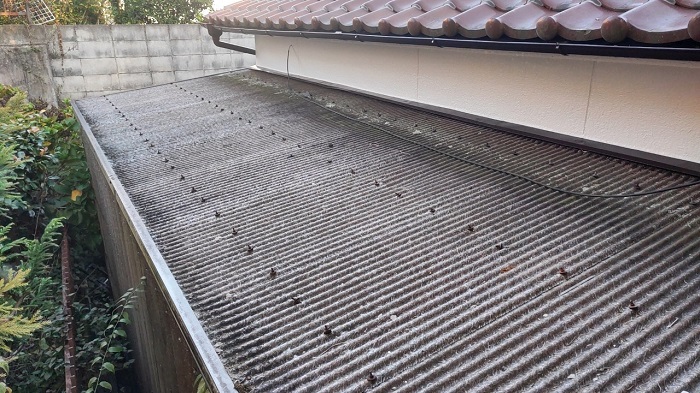 そのため貼り替え工事で波板を撤去したタイミングで、ホースなどを使って雨樋の中をしっかり洗い流しておくことが大切(´▽`ʃ♡ƪ)