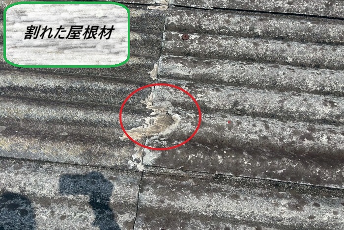 大波スレートの表面には、細かなひび割れを複数発見🔍