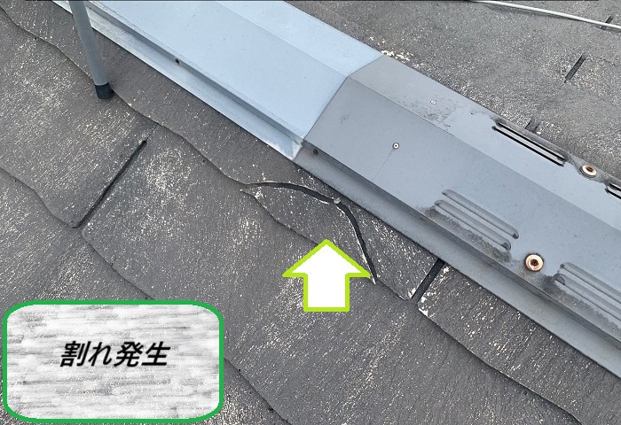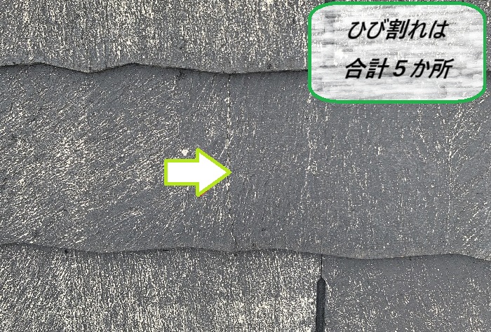 スレート屋根に3か所のひび割れを確認しましたX﹏X