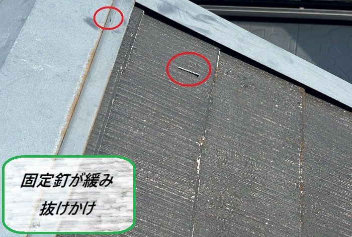 棟板金の固定釘がほとんど抜けかけていました(。>﹏<。)💦