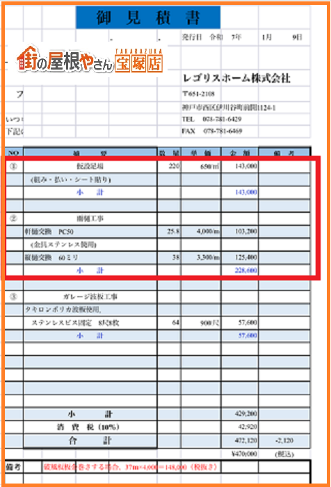 軒樋26m竪樋38m ステンレス金具を採用した雨樋交換工事を行った見積書を公開!