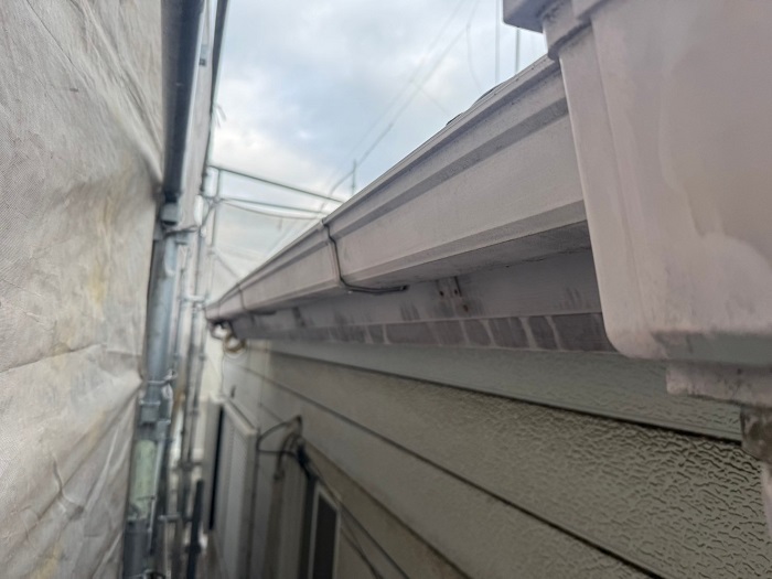 雨が降るたびに軒先から水が滴り落ち、外壁や足元が濡れてしまう状況に施主様も長らくお困りだったよう🤔
