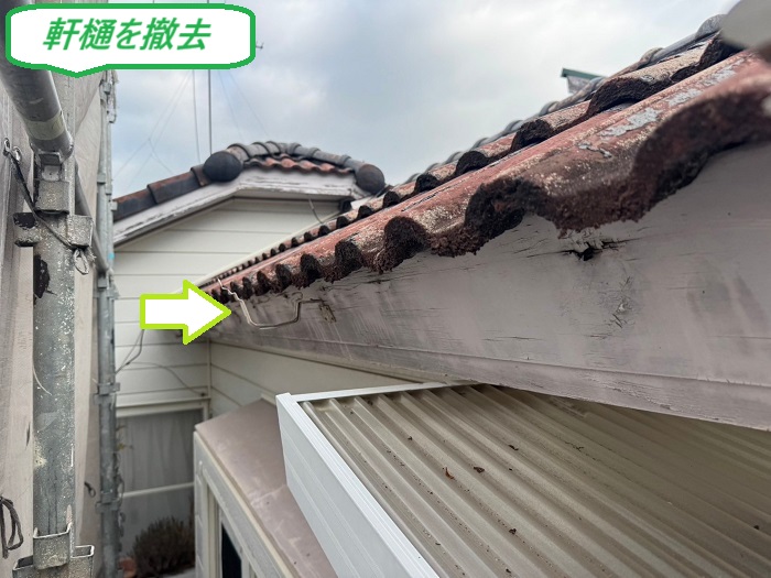 雨樋の交換では傷んだ角型軒樋を安全に取り外していきます(˶ᵔᵕᵔ˶)