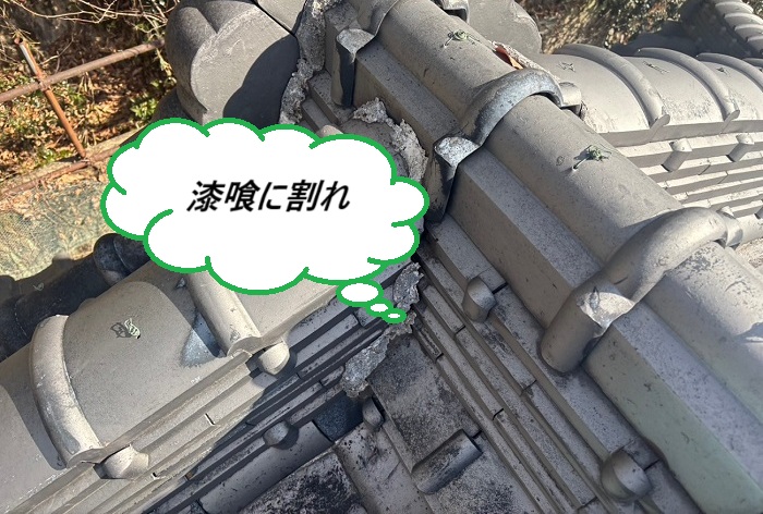 現地で調査を行ったところ、棟や隅棟部分の漆喰が広い範囲で剥がれていました(´;ω;`)💦