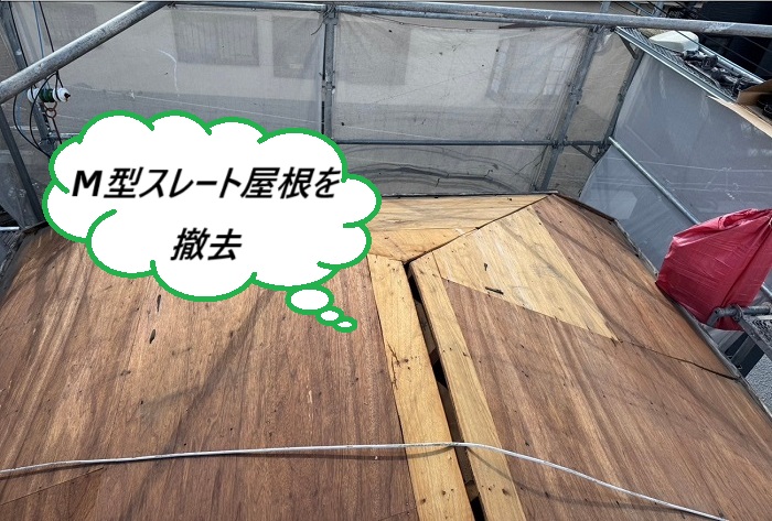 古い防水シートや下地材の撤去