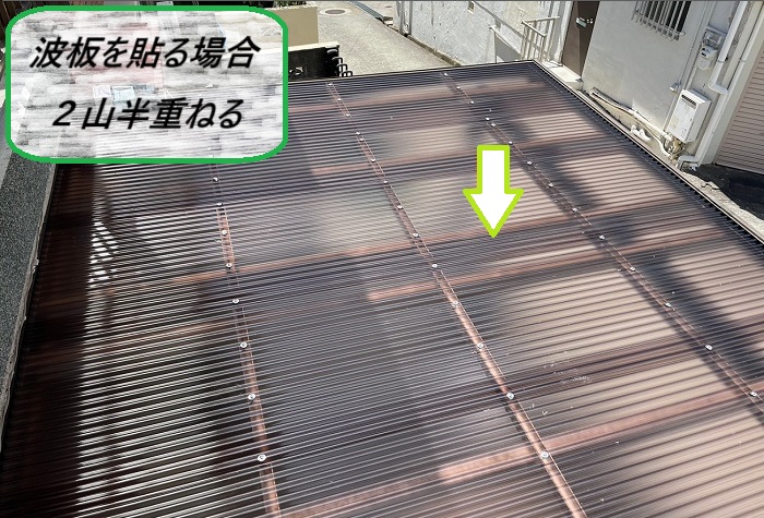 塩ビ波板の代わりに、ポリカーボネート製の波板(ポリカ波板)への貼り替えをご提案いたしました(๑˃̵ᴗ˂̵)✨