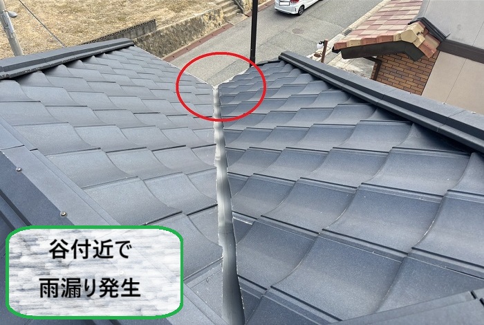 今回、雨漏りが確認されたのは、戸建てのルーガ雅屋根の『谷』と呼ばれる部分の先端付近でした( ˘•ω•˘ )💧