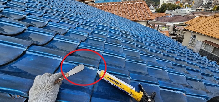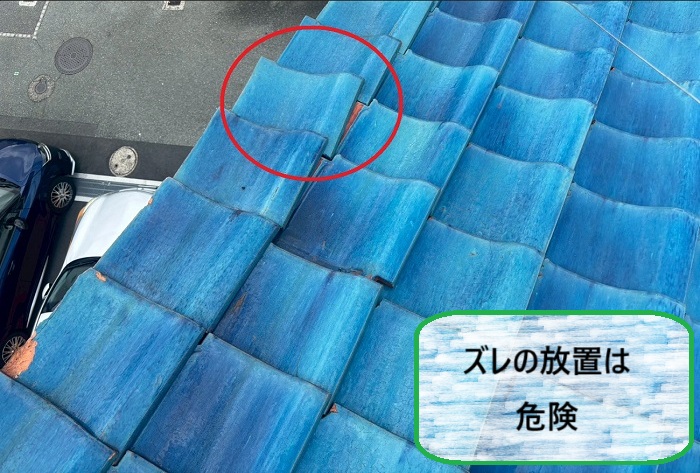 川西市 2階建ての釉薬瓦屋根でズレを確認!ハシゴ調査で安全に無料診断