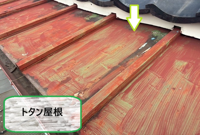 すでに大屋根の修繕工事が進んでいましたが、職人がふと瓦棒屋根に目を向けると、金属部分に広がる赤錆と腐食を発見🔍