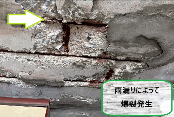 『鉄筋の爆裂』とは、コンクリート内部の鉄筋が錆びて膨張し、その圧力で内側からモルタルやコンクリートを押し広げてしまう現象のこと👆