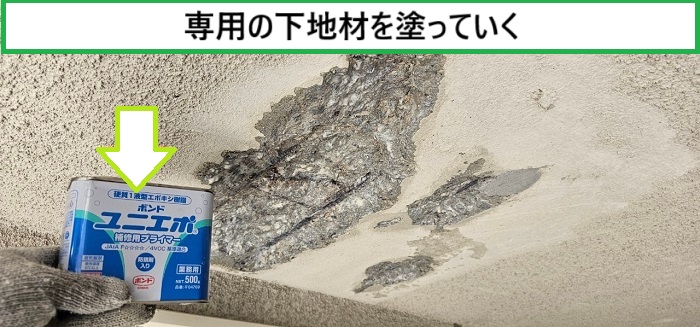 1️⃣天井モルタルの補修として、まずは露出した鉄筋の錆を丁寧に除去し、防錆処理を施します🔧