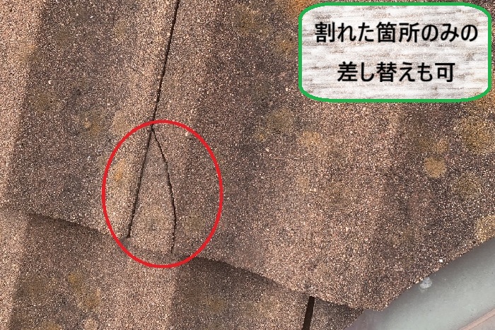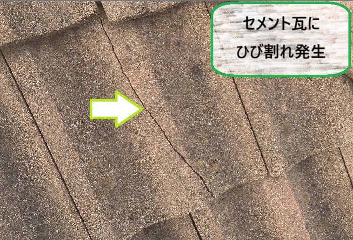 屋根を点検すると、数カ所でセメント瓦のひび割れが見つかりました(。>﹏<。)