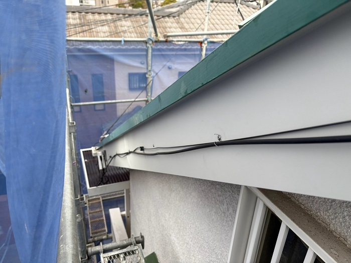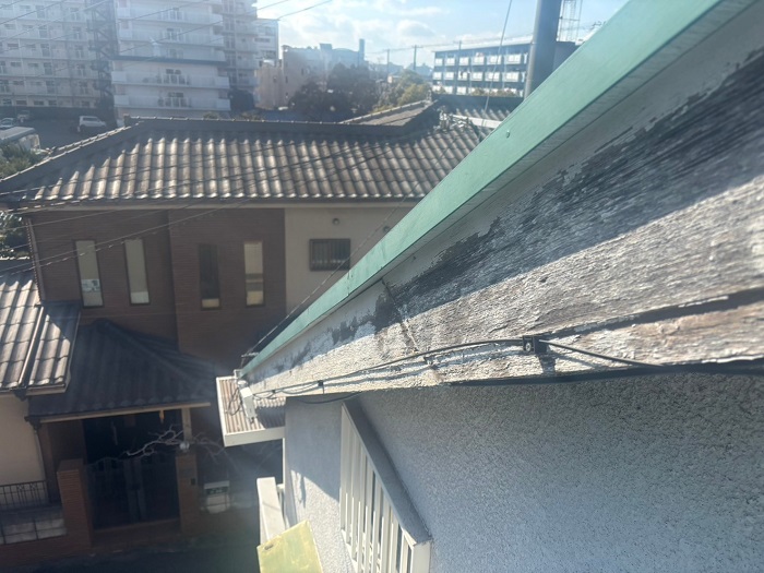 芦屋市の現場では腐食が進んでいたため、軒先とケラバまわりの木製破風板すべてに『ガルバリウム鋼板巻き』を施工しました。