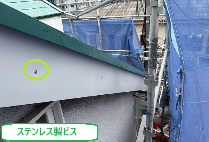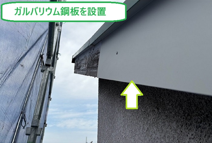 破風板を守るため、耐久性と見た目の綺麗さに優れたガルバリウム鋼板で板金カバー工事を行います(ฅ•͈ꈊ•͈ฅ)