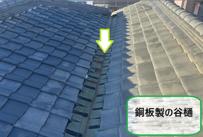 このお宅では過去に増築が行われており、その際に新旧の屋根が交わる部分に銅板製の谷板が設置されていました(˘꒳˘ )