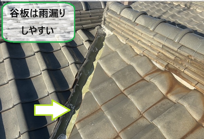 瓦は丈夫でも、谷板のような金属部分が弱ってしまうと雨水が侵入しやすくなるため、早めの点検と交換が大切ですね🔧