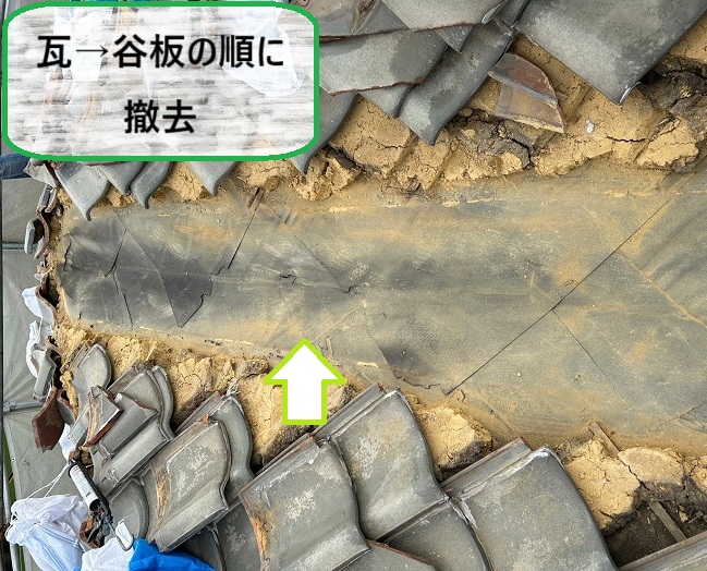 → 劣化が進んでいるため、古い谷板をすべて取り外します🔨