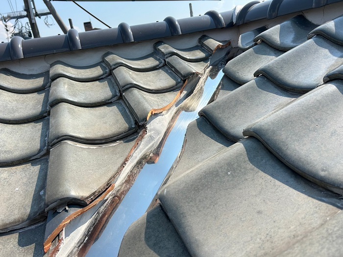 瓦屋根の住宅では、谷樋と呼ばれる雨水が集まる部分から雨漏りが発生しやすい傾向があります(ฅ’ω’ฅ)