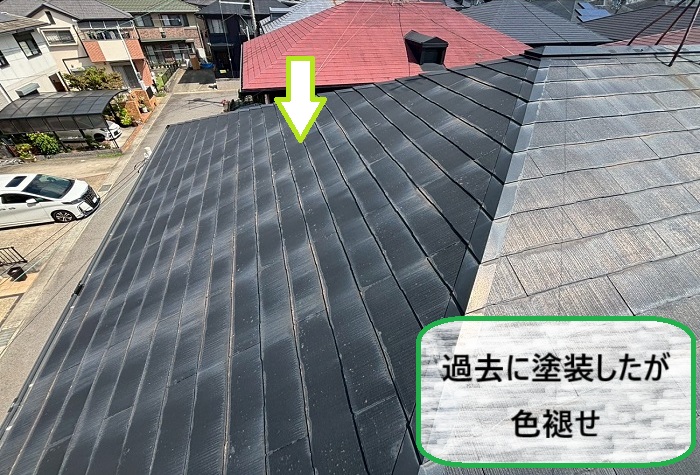 屋根にはカラーベストが葺かれており、以前に塗装をされた形跡がありました(ꕤ˘͈ᵕ ˘͈)