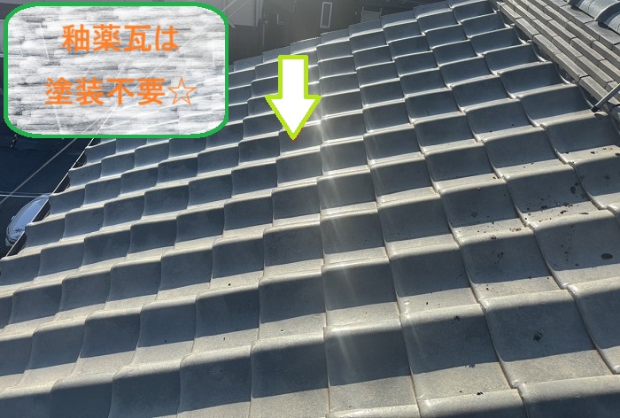 釉薬瓦は表面に釉薬が施されているため、屋根材そのものを塗装する必要がありません(๑˃͈꒵˂͈๑)