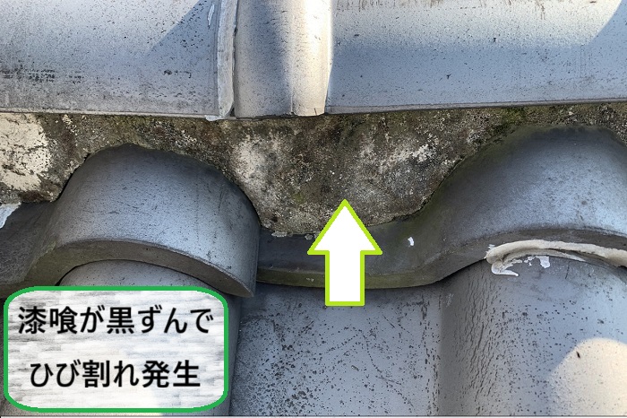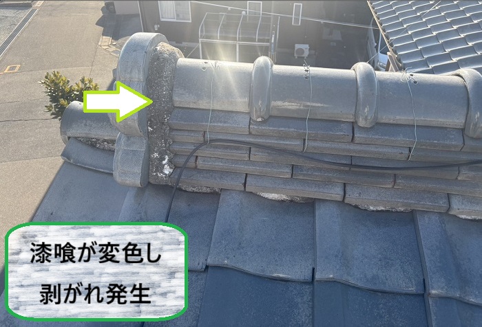 さらにひび割れが広がると漆喰が剥がれ落ち、棟瓦を支える力が弱くなってしまいます。