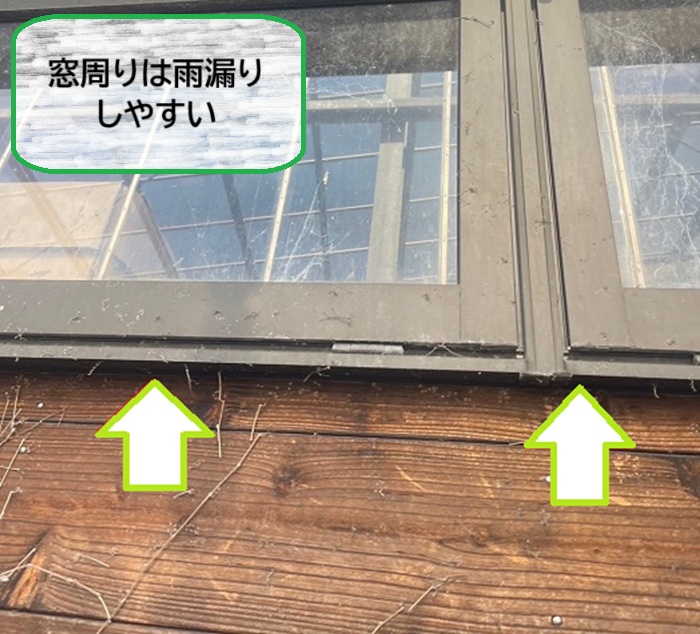 木製外壁は古くなるほど雨水を吸いやすくなり、特に窓まわりから雨漏りが起きやすくなります🌧️