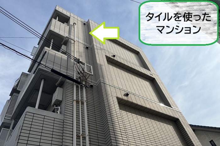外壁材はタイルと一部モルタルで作られており、現在は外壁タイルに割れや欠けといった損傷が見られる状態でした。