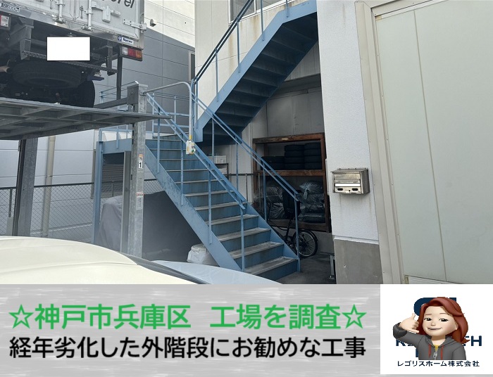 神戸市兵庫区 屋外階段のサビ・腐食は危険!工場での修理にお勧めの工法を解説