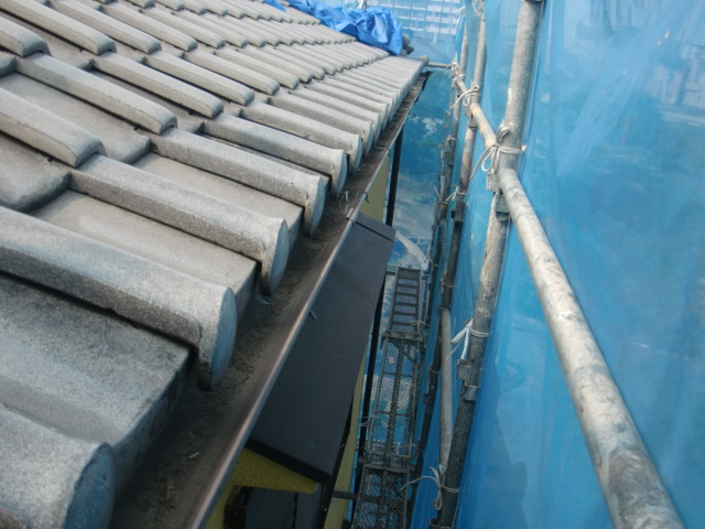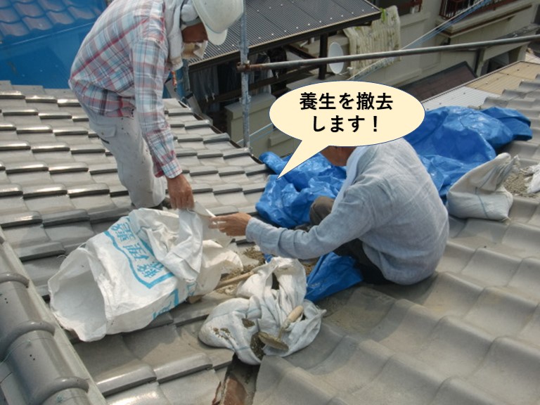岸和田市 F様邸の屋根に張っていたブルーシートと土のう袋を撤去し、作業しやすいように現場を整えました(^^)