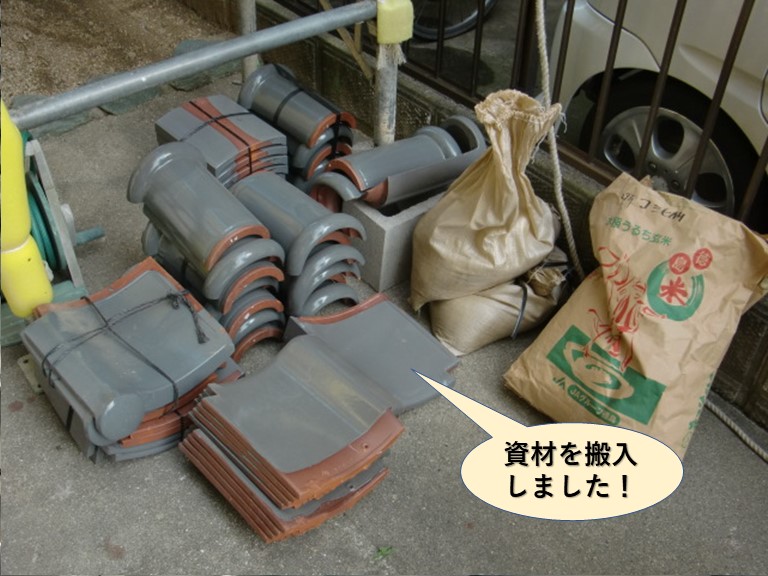 岸和田市 F様邸の屋根修理に必要な瓦や葺き土などの資材を搬入しました(^o^)丿