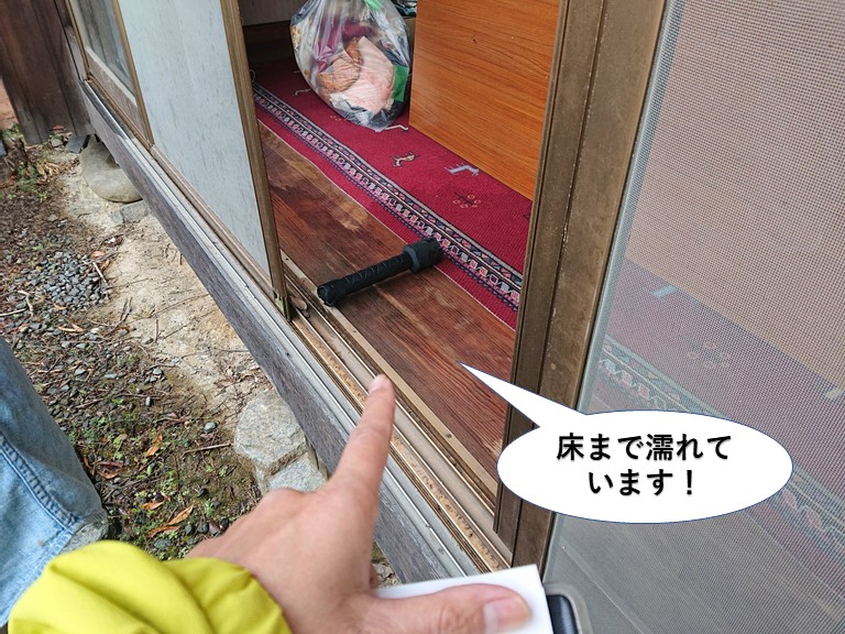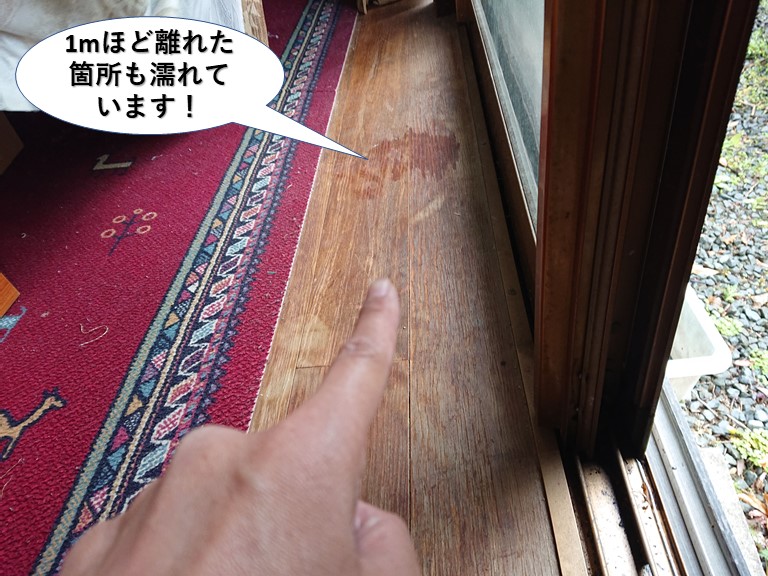 床の濡れ方を見ると、雨水がたくさん入ったことが分かります。