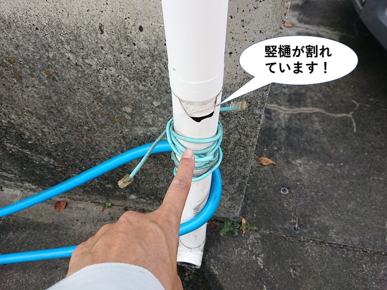 竪樋は軒樋に集まった雨水が流れ込んできますので、破損するとそこから雨水が噴出してしまいます。