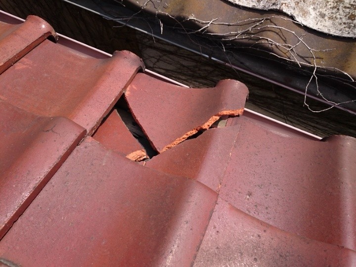 瓦は重なり代をとって葺いていますので、隅のほうの多少の欠けなら問題ないのですが、大きく欠けてしまうと隙間が生じて雨水が内部に浸入する原因になってしまいます。