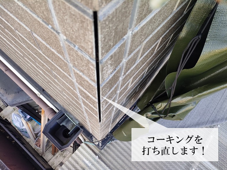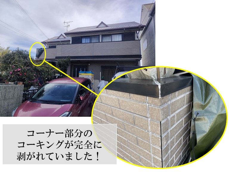 手すり壁のコーナー部分のコーキングが剥がれていました