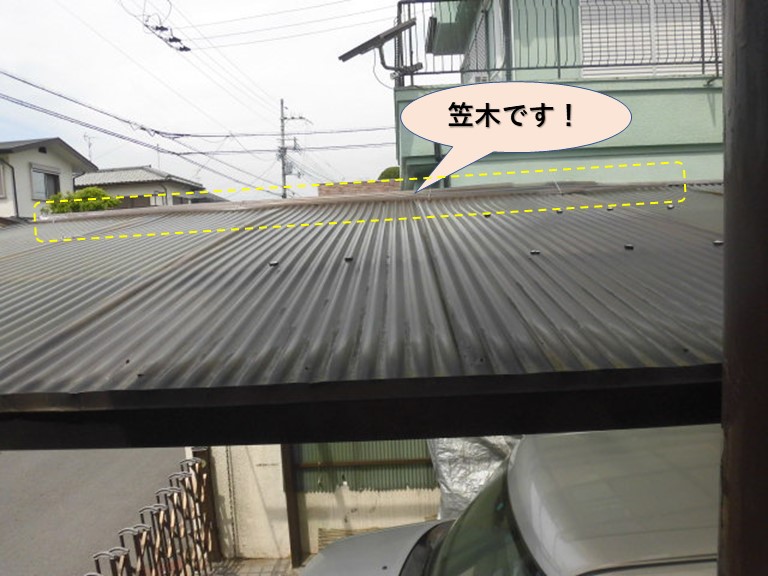 T様邸のカーポートは三角屋根ですので、屋根の頂点に棟笠木の波板が付けられていました。