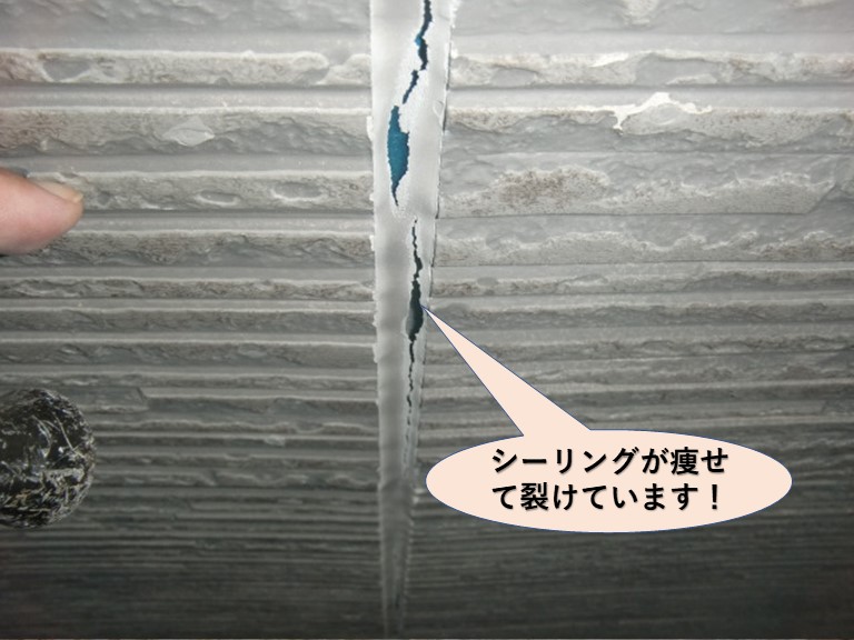 Y様邸はサイディングの外壁で、外壁のパネルが反りかえり浮いてきており、ご主人様が心配されて塗装をお考えになったそうです。また、目地のシーリングがひび割れて劣化が著しいことも工事をするきっかけになりました。