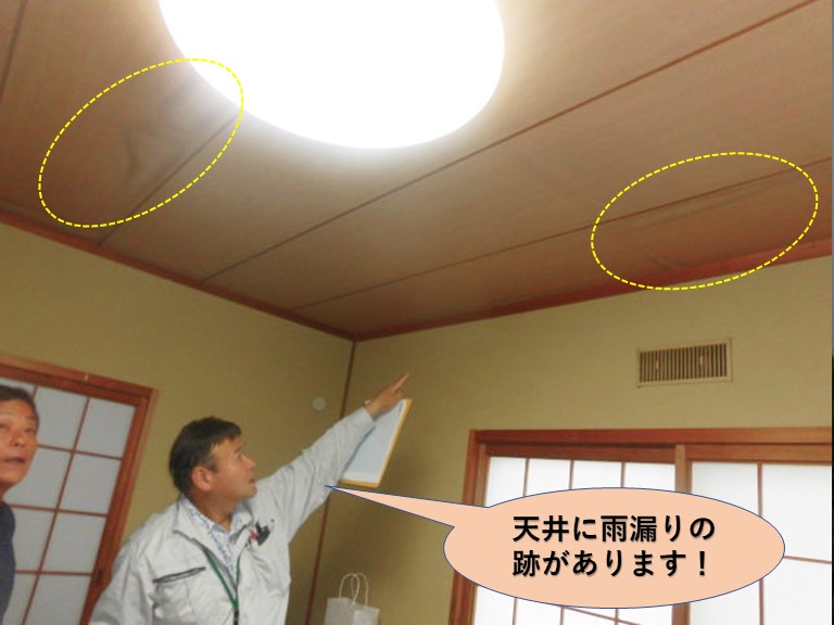 岸和田市の住宅で「一階の天井に雨漏りの跡があるんです」とご相談があり現地調査にお伺いしました。