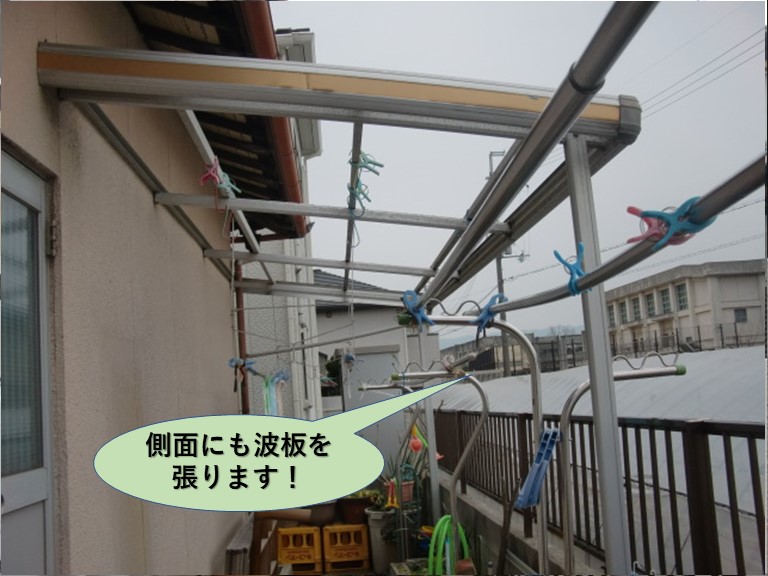 更に、雨が降っても洗濯物が干せるように側面にも雨除けの波板を張ることになりました。