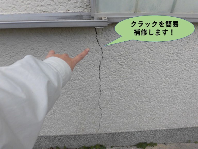 外壁を塗り替える時に一緒にクラックを修理すると上から塗装をかけ目立たなくなるのでお勧めです。(逆に、塗装を行う時には必ずクラックを補修します)