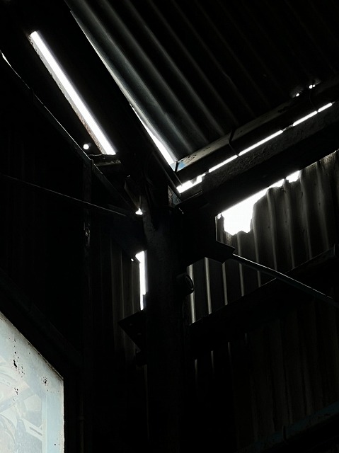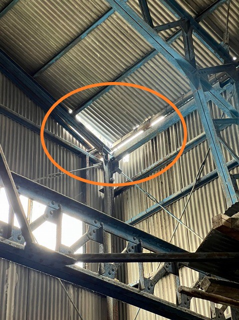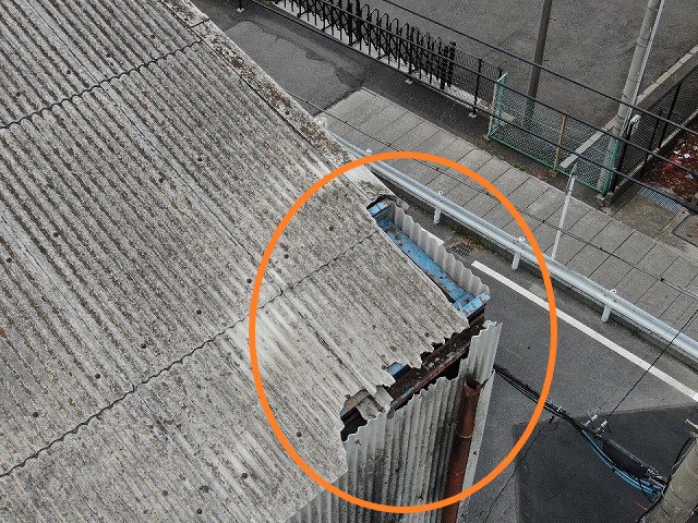 下から見ても波型スレート屋根が割れているのが分かりますね(;´Д`)