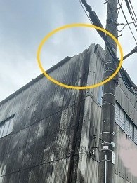 草加市の波型スレート屋根に大きな穴…巨大工場の現場調査に伺いました